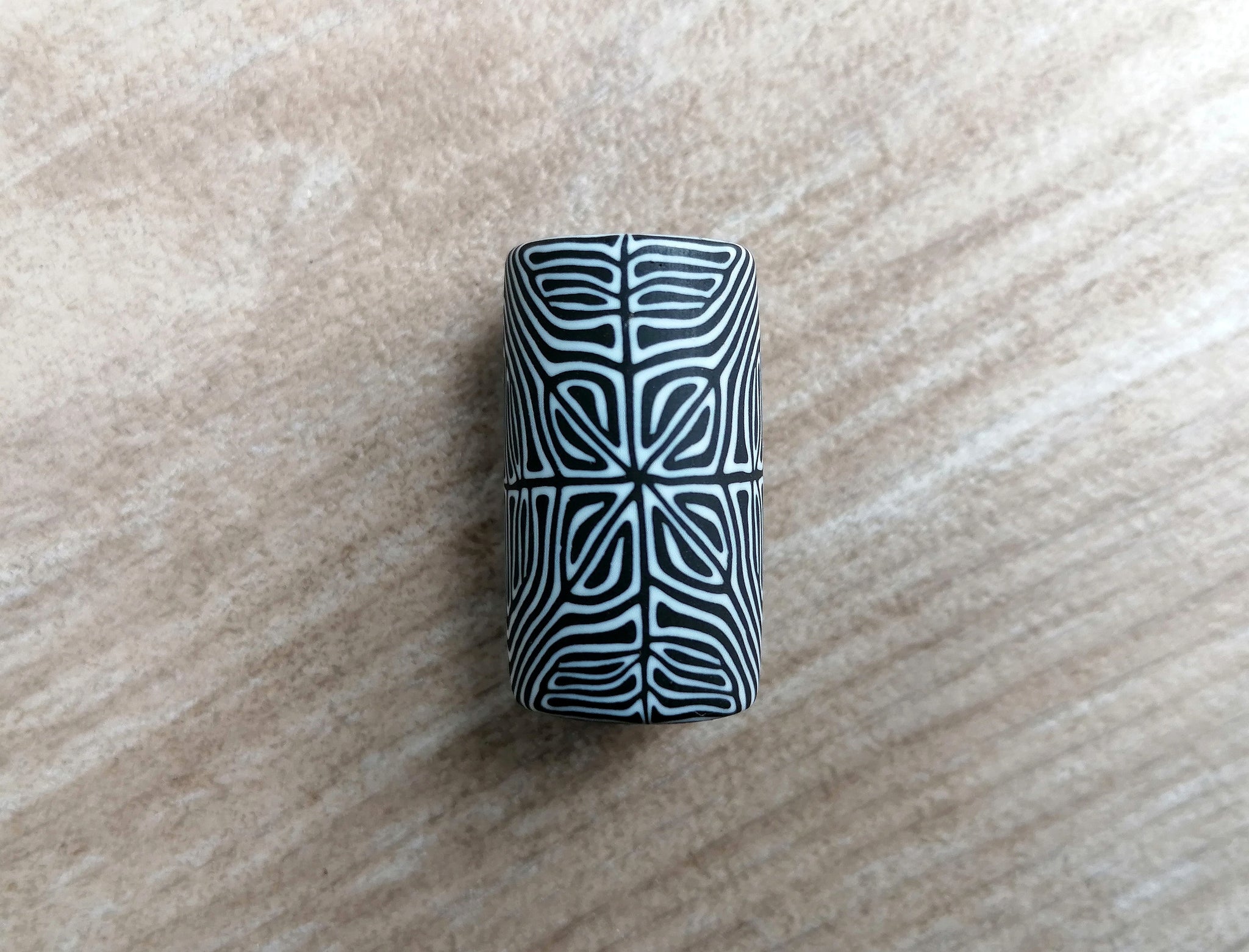 Handmade with intention and crafted from durable polymer clay, this Monochrome Tile Cane Dread Bead brings a bold yet minimalist touch to any set of dreads, braids, or locs. Each bead is created by Emily Jane Adam, founder of Wild Flower Trading and former owner of The Dread Bead Shop, using her signature cane designs to achieve crisp patterns and a smooth, lightweight finish.